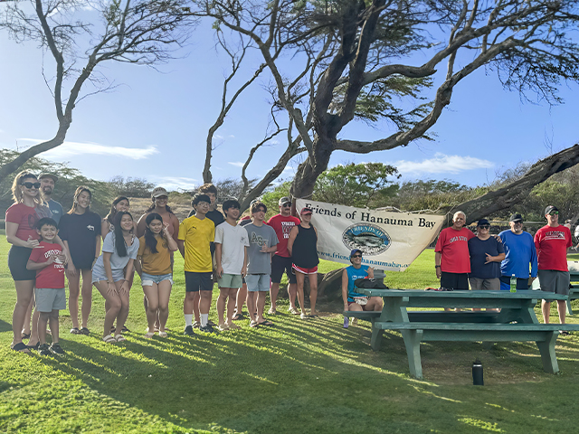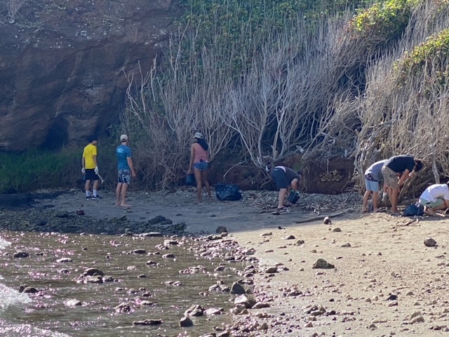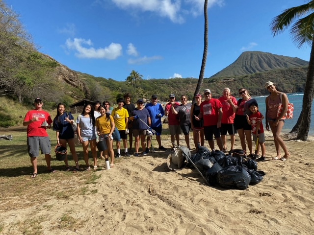 Saturday, March 2, 2024, twenty-six participants gathered at Hanauma Bay to again clean the Witches’ Brew side of the preserve. Due to the currents, the Witches’ Brew side is always the primary spot where ocean debris is deposited. Under the supervision of faculty advisor, Paul Balzas, the Wipeout Crew from Henry J. Kaiser High School and Lon Briggs and the members of the Ohio State University Alumni Club of Hawaii worked from 8:00 – 10:00 A.M., to collect lots of plastics items and pieces from the beach.
