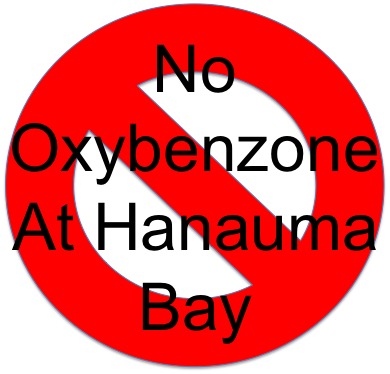 The reef structures of Hanauma Bay are living creatures, and are critical to sustaining the health of our oceans and seas and the sea-life that depend on them. AVOID any sunscreen product containing Oxybenzone – a known Reef-Killer. Please use those products identified at link below which use reef-friendly minerals as primary sun-block ingredients. Remember: “No Oxybenzone at Hanauma Bay!”