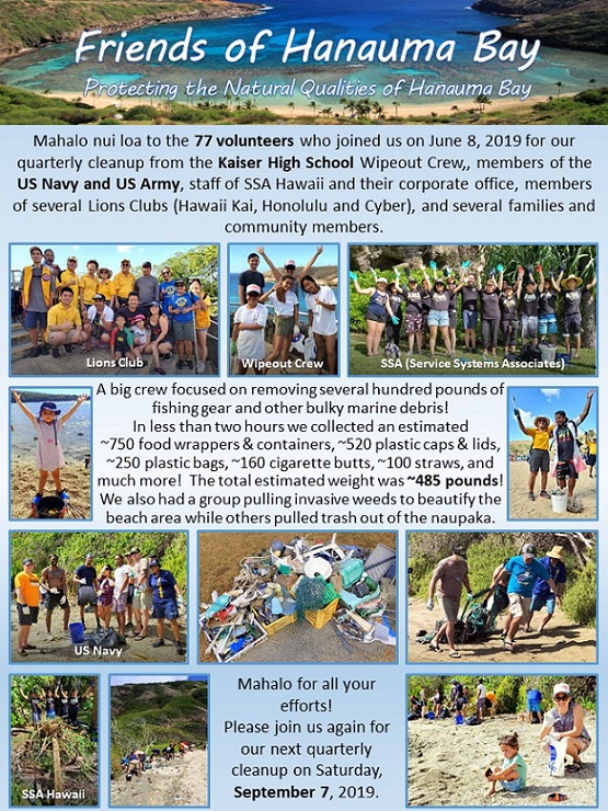 our cleanup on June 8, plus 6 Friends of Hanauma Bay members. The focus